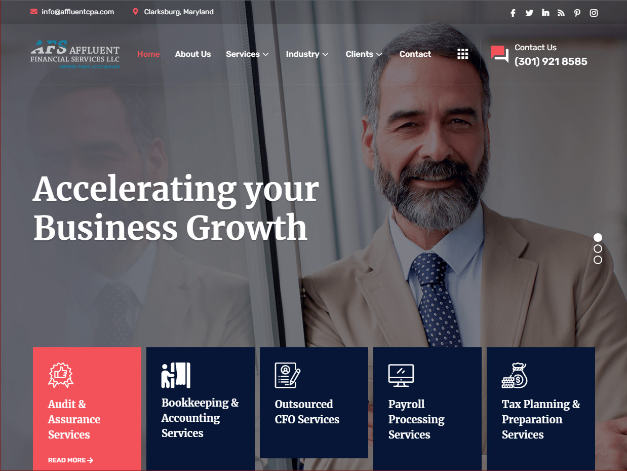 Affluent Financial Services is a US-based accounting firm that provides professional services for small and medium-sized businesses. The company provides audit & assurance services, bookkeeping & accounting services, outsourced CFO services, payroll processing services, and tax planning & preparation services.