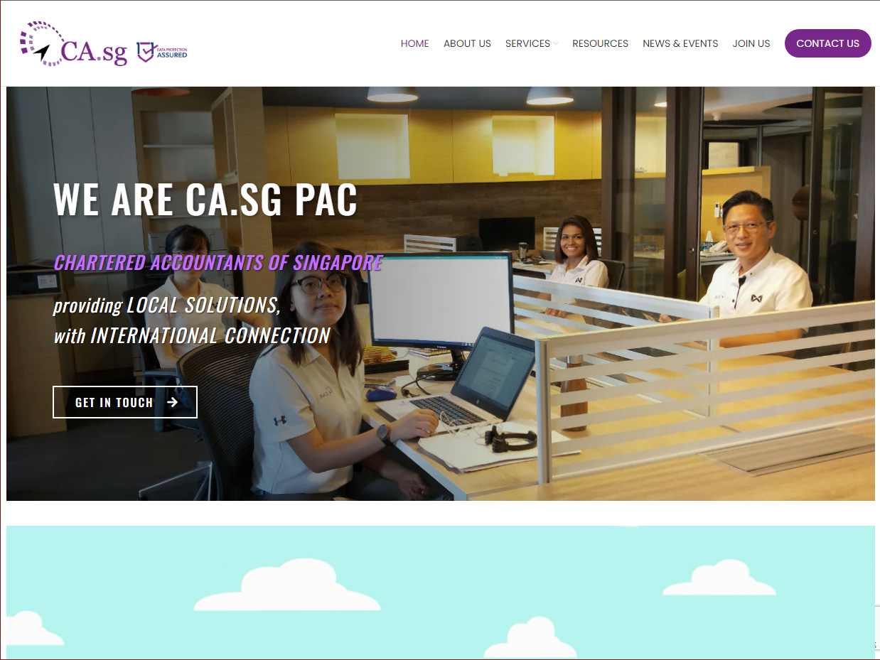 CA.sg PAC is and Singapore accounting firm that supports multinational corporations and large SMEs. They deliver such services as assurance, advisory, accountancy, tax, corporate secretarial, and business process outsourcing.