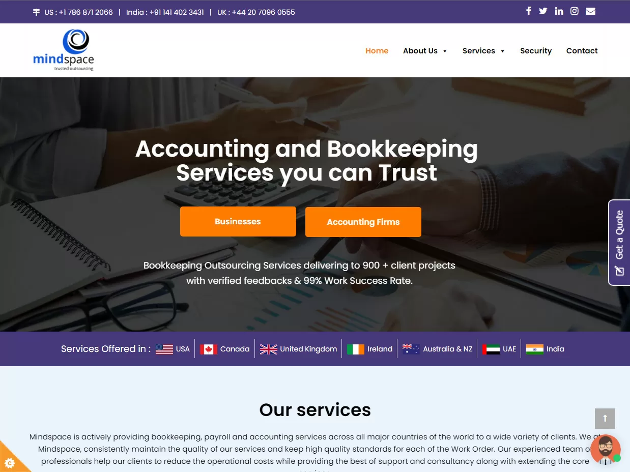 Mindspace provides bookkeeping, payroll, and accounting services worldwide. Their experienced team will help your business reduce operational costs and provide you with support and consultancy.